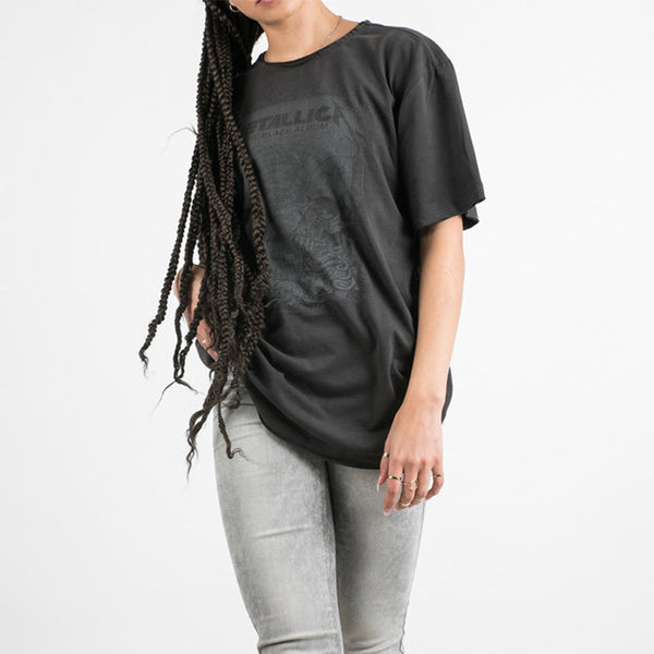 Support your love for Metallica with this vintage-inspired, charcoal T-shirt featuring artwork from their iconic album, The Black Album. Amplify your style and pay tribute to one of the greatest rock bands of all time with this comfortable and iconic shirt.